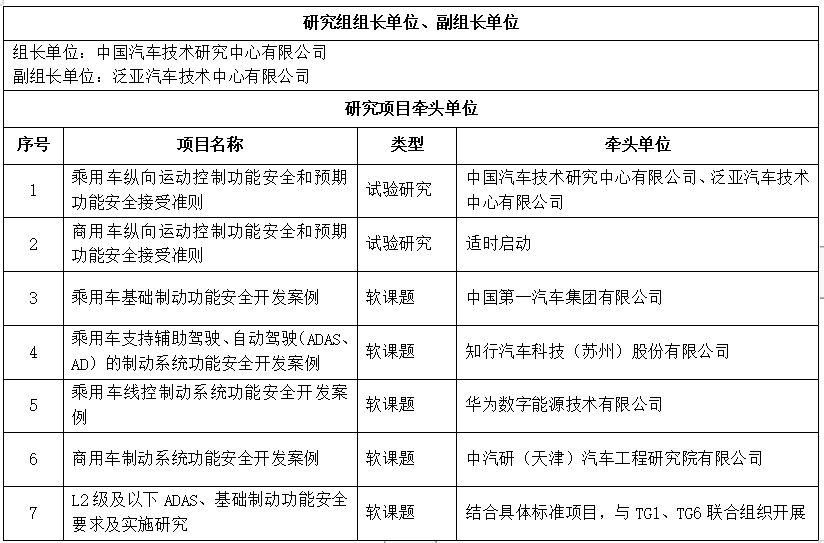 TG2-车辆行为安全接受准则研究组(纵向)的主要研究目标:基于GB/T 34590《道路车辆 功能安全》、GB/T 43267《道路车辆 预期功能安全》给出的方法论,针对ABS、ESC、AEB、电子助力、电子驻车、电力再生制动、制动辅助(BA)、车辆纵向运动控制VLC、制动冗余系统、线控制动等纵向运动控制相关系统和功能,研究其功能异常行为与车辆参数及安全接受准则间的关系,识别典型危害行为、场景,建立适用于新能源汽车、智能网联汽车、传统汽车的车辆侧向运动行为安全接受准则(如可控性、信心度等量化指标)和测评方法,开发车辆纵向运动控制系统典型安全架构及方案。