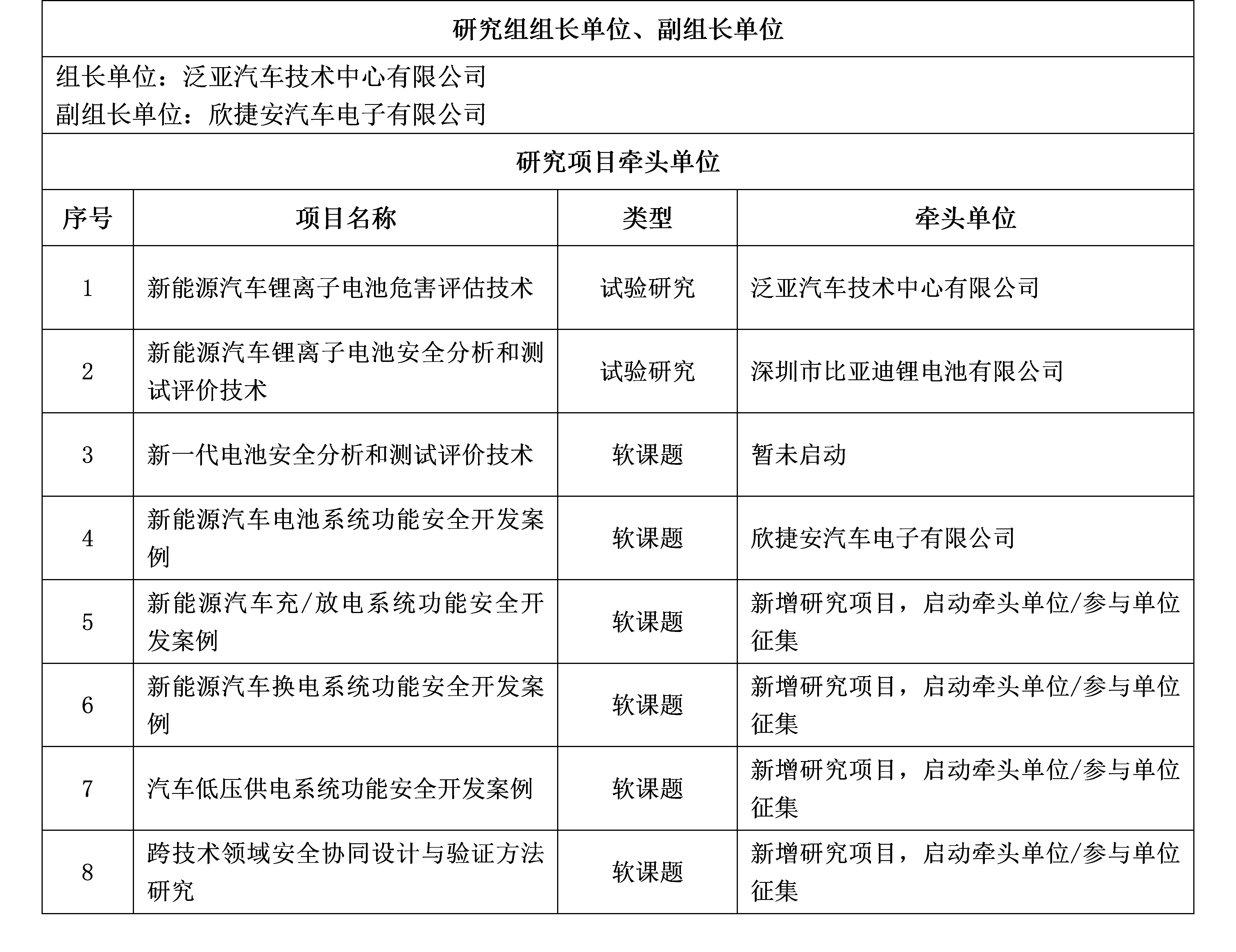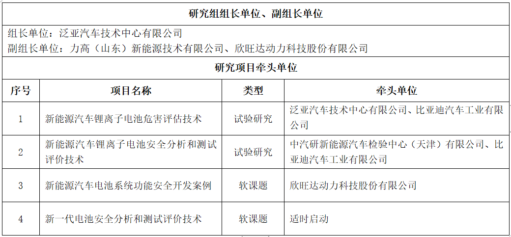 TG4-新能源电池系统研究组的主要研究目标:基于GB/T 34590《道路车辆 功能安全》系列标准的方法论,研究新能源电池系统的危害及其特征,开发功能安全评价技术和测试技术,建立行业最佳实践案例库,推动国内新能源电池系统产业的功能安全开发和管理水平提升。同时,研究成果将为GB《道路车辆 功能安全要求及验证确认方法》预研、GB/T 39086-2020《电动汽车用电池管理系统功能安全要求及试验方法》修订、ISO/TR 9968《道路车辆-功能安全-新能源汽车可充电储能系统的应用》国际国内新能源电池功能安全相关标准的制修订提供支撑和参考。