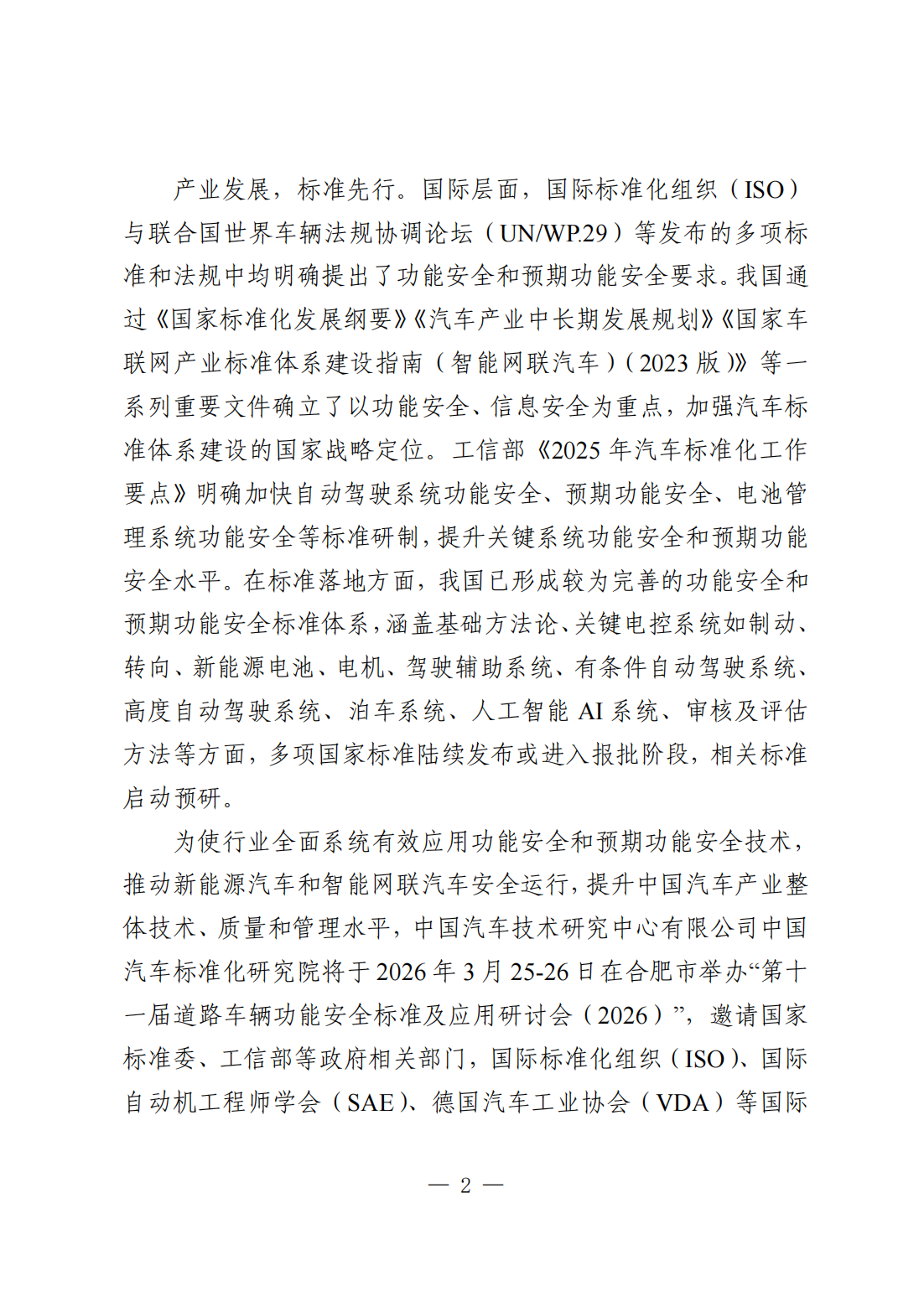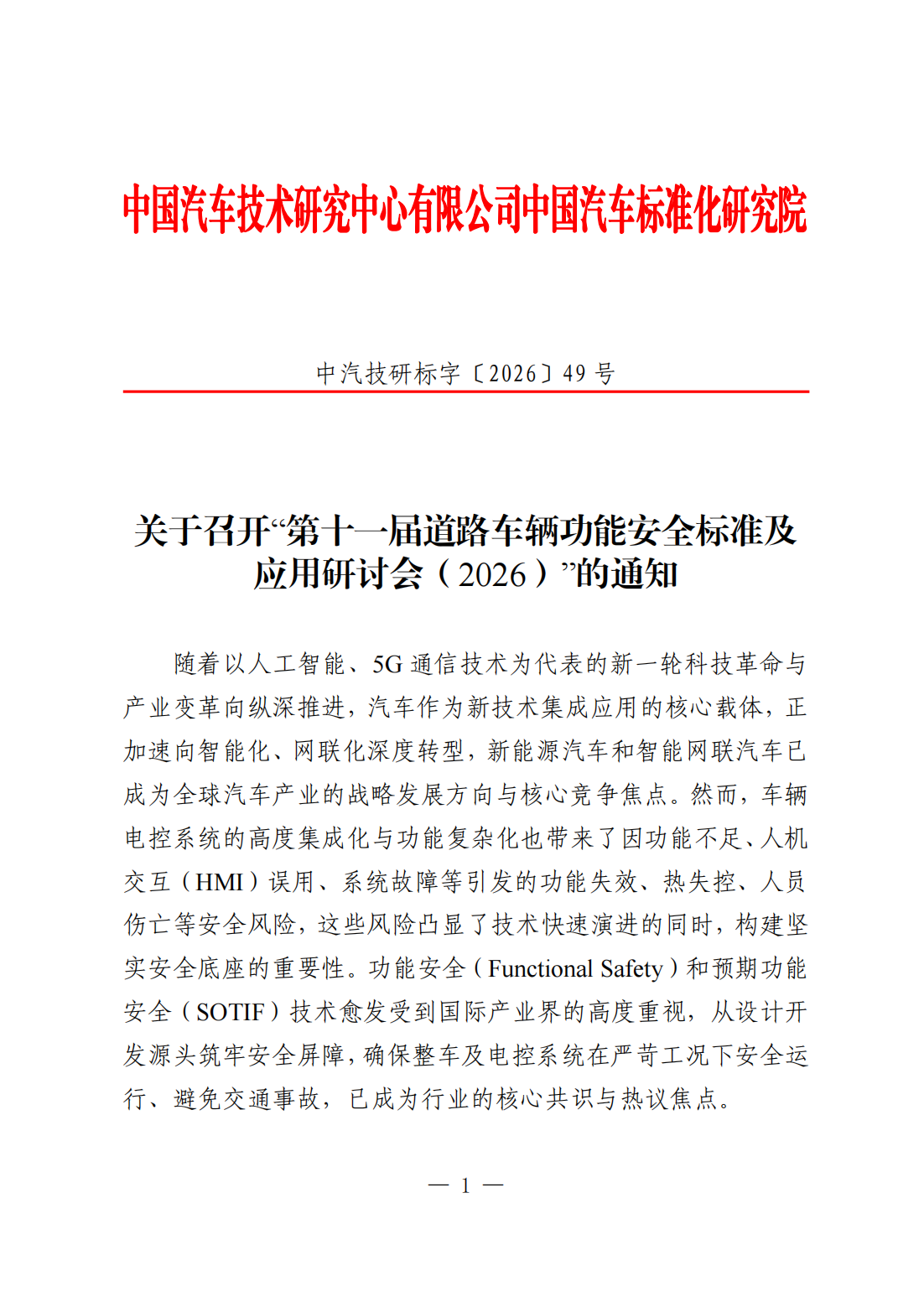 关于召开“第十一届道路车辆功能安全标准及应用研讨会(2026)”的通知